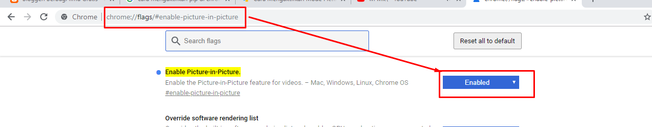 - Buka Google Chrome dan Pastekan Perintah ini chrome://flags/#enable-picture-in-picture dan ganti dari default pilih enabled